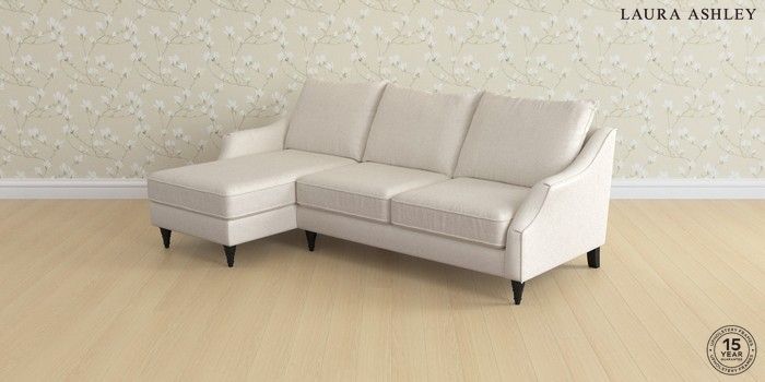 7.3.1 Buy Beverley by Laura Ashley Medium Sofa Chaise - Left Hand Anneliese Oyster Natural Low Turned - Black from the Seasons online shop Click here to use our website with more accessibility support, for example screen readers