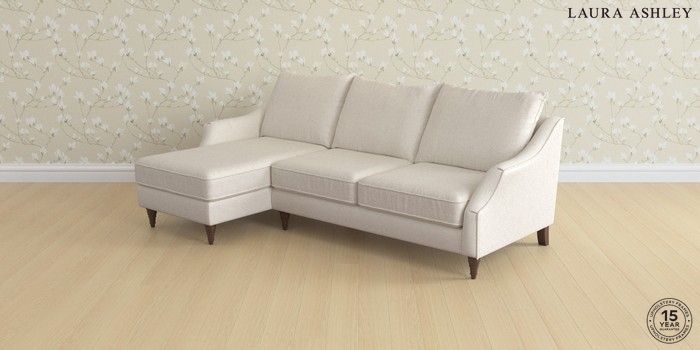 7.3.1 Buy Beverley by Laura Ashley Medium Sofa Chaise - Left Hand Anneliese Oyster Natural Low Turned - Chestnut from the Seasons online shop Click here to use our website with more accessibility support, for example screen readers