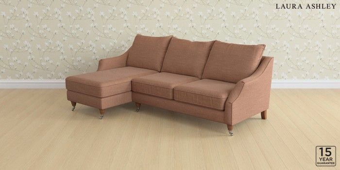 7.2.10 Buy Beverley by Laura Ashley Medium Sofa Chaise - Left Hand Kinsham Rust Orange Low Chrome Castor - Teak from the Seasons online shop Click here to use our website with more accessibility support, for example screen readers