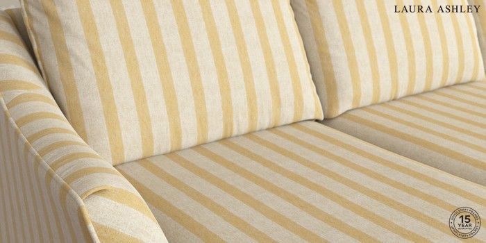7.3.1 Buy Beverley by Laura Ashley Medium Sofa Chaise - Left Hand Kinsham Stripe Ochre Yellow Low Turned - Chestnut from the Seasons online shop Click here to use our website with more accessibility support, for example screen readers