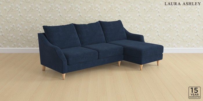 7.3.1 Buy Beverley by Laura Ashley Medium Sofa Chaise - Right Hand Alwyn Velvet Midnight Navy Low Turned - Light Oak from the Seasons online shop Click here to use our website with more accessibility support, for example screen readers