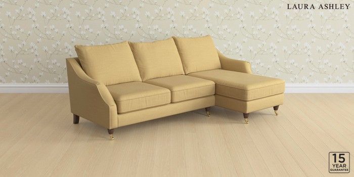 7.3.1 Buy Beverley by Laura Ashley Medium Sofa Chaise - Right Hand Kinsham Ochre Yellow Low Brass Castor - Chestnut from the Seasons online shop Click here to use our website with more accessibility support, for example screen readers