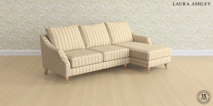 7.3.1 Buy Beverley by Laura Ashley Medium Sofa Chaise - Right Hand Kinsham Stripe Ochre Yellow Low Brass Castor - Light Oak from the Seasons online shop Click here to use our website with more accessibility support, for example screen readers