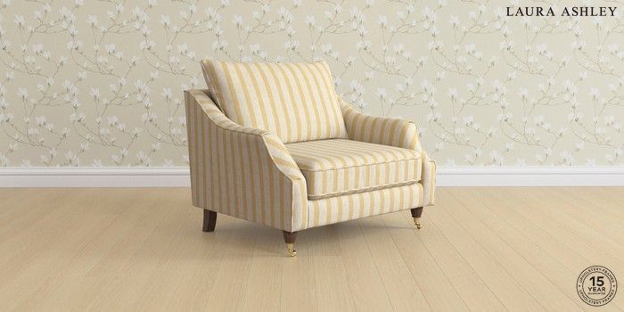 7.3.1 Buy Beverley by Laura Ashley Snuggle Kinsham Stripe Ochre Yellow Low Brass Castor - Chestnut from the Seasons online shop Click here to use our website with more accessibility support, for example screen readers