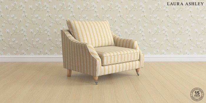 7.3.1 Buy Beverley by Laura Ashley Snuggle Kinsham Stripe Ochre Yellow Low Chrome Castor - Light Oak from the Seasons online shop Click here to use our website with more accessibility support, for example screen readers
