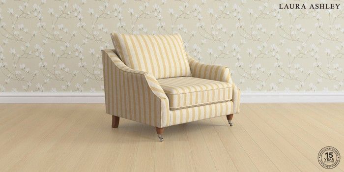 7.3.1 Buy Beverley by Laura Ashley Snuggle Kinsham Stripe Ochre Yellow Low Chrome Castor - Teak from the Seasons online shop Click here to use our website with more accessibility support, for example screen readers