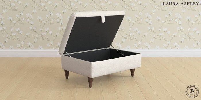 7.3.1 Buy Beverley by Laura Ashley Storage Footstool Anneliese Oyster Natural Low Turned - Chestnut from the Seasons online shop Click here to use our website with more accessibility support, for example screen readers
