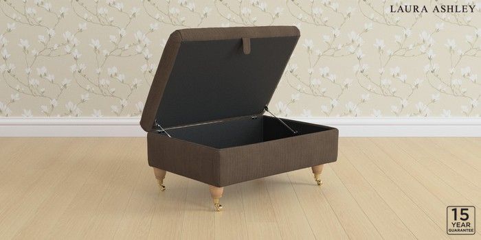 7.3.1 Buy Beverley by Laura Ashley Storage Footstool Sinclair Cord Chocolate Brown Low Brass Castor - Light Oak from the Seasons online shop Click here to use our website with more accessibility support, for example screen readers