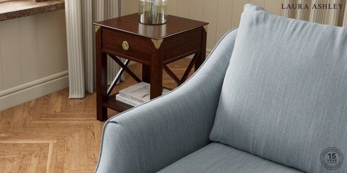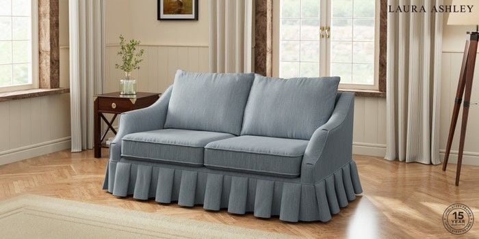 Sit back and relax in style with the elegant Laura Ashley Beverley sofa - featuring a relaxed box pleat at the base to create a beautiful modern country look. From its flared set back sofa arm design to the pillow edged back cushions smart valance to the floor, the Beverley sofa makes an excellent addition to any living space. Foam seat cushions with soft foam toppers offer comfort, support, and ease of maintenance. Pair this with the box pleat footstool to complete the look!