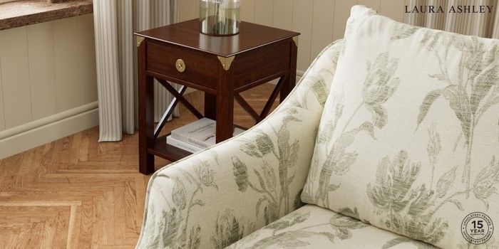Sit back and relax in style with the elegant Laura Ashley Beverley sofa - featuring a relaxed box pleat at the base to create a beautiful modern country look. From its flared set back sofa arm design to the pillow edged back cushions smart valance to the floor, the Beverley sofa makes an excellent addition to any living space. Foam seat cushions with soft foam toppers offer comfort, support, and ease of maintenance. Pair this with the box pleat footstool to complete the look!