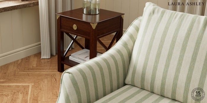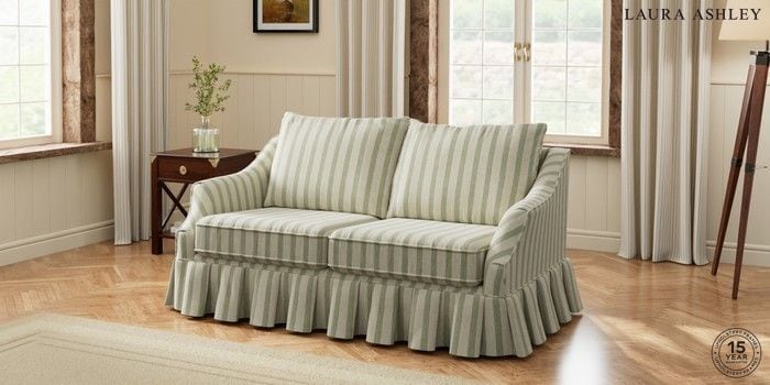 7.3.1 Buy Beverley Pleated by Laura Ashley 3 Seater Small Sofa Kinsham Stripe Hedgerow Green Glide from the Seasons online shop Click here to use our website with more accessibility support, for example screen readers