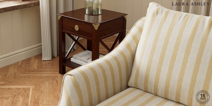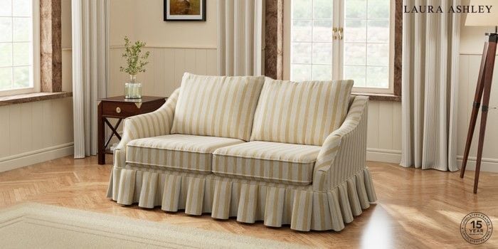 7.3.1 Buy Beverley Pleated by Laura Ashley 3 Seater Small Sofa Kinsham Stripe Ochre Yellow Glide from the Seasons online shop Click here to use our website with more accessibility support, for example screen readers