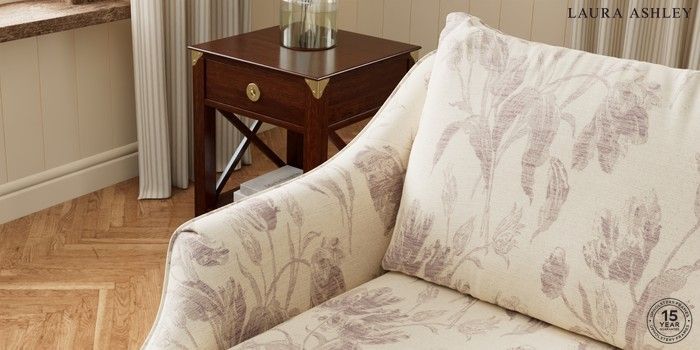 Sit back and relax in style with the elegant Laura Ashley Beverley sofa - featuring a relaxed box pleat at the base to create a beautiful modern country look. From its flared set back sofa arm design to the pillow edged back cushions smart valance to the floor, the Beverley sofa makes an excellent addition to any living space. Foam seat cushions with soft foam toppers offer comfort, support, and ease of maintenance. Pair this with the box pleat footstool to complete the look!