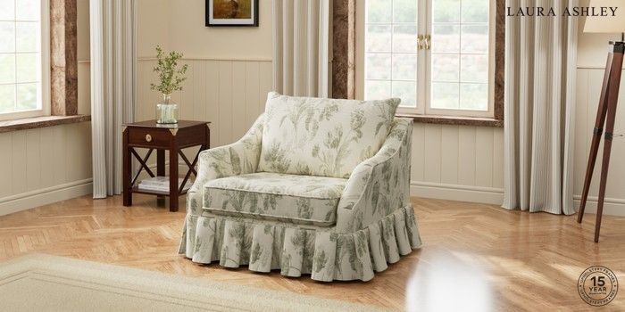 Sit back and relax in style with the elegant Laura Ashley Beverley sofa - featuring a relaxed box pleat at the base to create a beautiful modern country look. From its flared set back sofa arm design to the pillow edged back cushions smart valance to the floor, the Beverley sofa makes an excellent addition to any living space. Foam seat cushions with soft foam toppers offer comfort, support, and ease of maintenance. Pair this with the box pleat footstool to complete the look!
