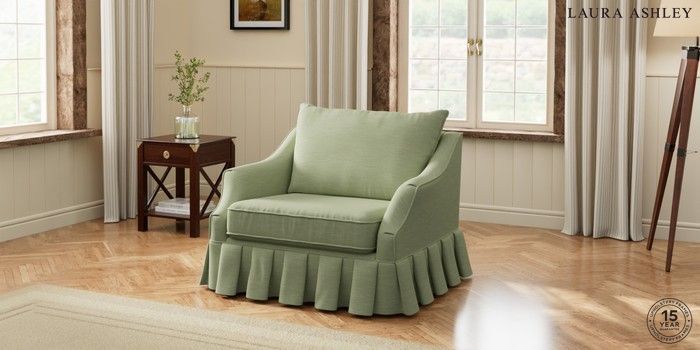 Sit back and relax in style with the elegant Laura Ashley Beverley sofa - featuring a relaxed box pleat at the base to create a beautiful modern country look. From its flared set back sofa arm design to the pillow edged back cushions smart valance to the floor, the Beverley sofa makes an excellent addition to any living space. Foam seat cushions with soft foam toppers offer comfort, support, and ease of maintenance. Pair this with the box pleat footstool to complete the look!