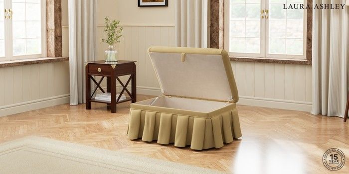 7.3.1 Buy Beverley Pleated by Laura Ashley Storage Footstool Kinsham Ochre Yellow Glide from the Seasons online shop Click here to use our website with more accessibility support, for example screen readers