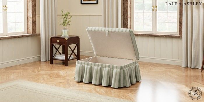 7.3.1 Buy Beverley Pleated by Laura Ashley Storage Footstool Kinsham Stripe Hedgerow Green Glide from the Seasons online shop Click here to use our website with more accessibility support, for example screen readers