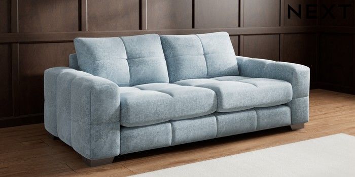 7.2.10 Buy Brooke Deep Sit 3 Seater Sofa Plush Chenille Light Blue Large Square Angle - Gunmetal from the Seasons online shop Click here to use our website with more accessibility support, for example screen readers