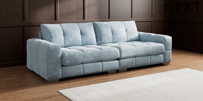 7.2.10 Buy Brooke Deep Sit 4 Seater Large Sofa Plush Chenille Light Blue Large Square Angle - Gunmetal from the Seasons online shop Click here to use our website with more accessibility support, for example screen readers