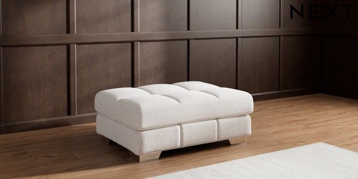 7.2.10 Buy Brooke Deep Sit Footstool Multi Weave Oyster Square Angle - Chrome Metal from the Seasons online shop Click here to use our website with more accessibility support, for example screen readers