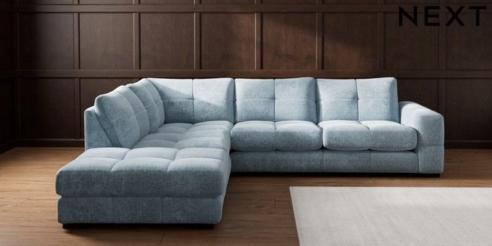 7.2.10 Buy Brooke Deep Sit Large Open End Corner Chaise - Left Hand Plush Chenille Light Blue Large Square Angle - Dark from the Seasons online shop Click here to use our website with more accessibility support, for example screen readers