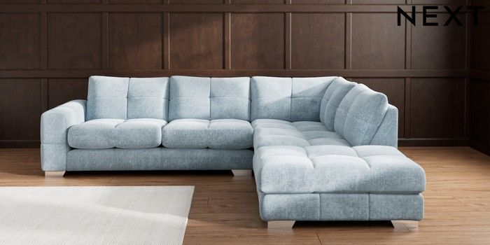 7.2.10 Buy Brooke Deep Sit Large Open End Corner Chaise - Right Hand Plush Chenille Light Blue Large Square Angle - Chrome Metal from the Seasons online shop Click here to use our website with more accessibility support, for example screen readers