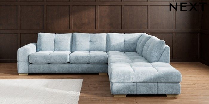 7.2.10 Buy Brooke Deep Sit Large Open End Corner Chaise - Right Hand Plush Chenille Light Blue Large Square Angle - Light from the Seasons online shop Click here to use our website with more accessibility support, for example screen readers