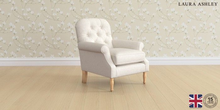 7.3.1 Buy Cambridge Button Back by Laura Ashley Armchair Anneliese Oyster Natural Medium Turned - Light Oak from the Seasons online shop Click here to use our website with more accessibility support, for example screen readers