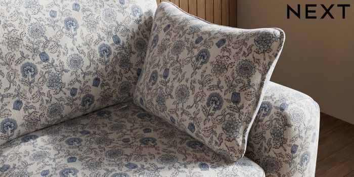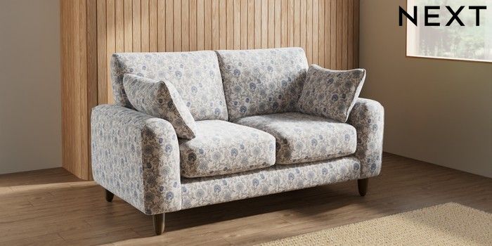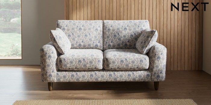 7.3.1 Buy Campbell 2 Seater Sofa Relaxed Linen Look Print Woodblock Floral Blue High Leg - Mid from the Seasons online shop