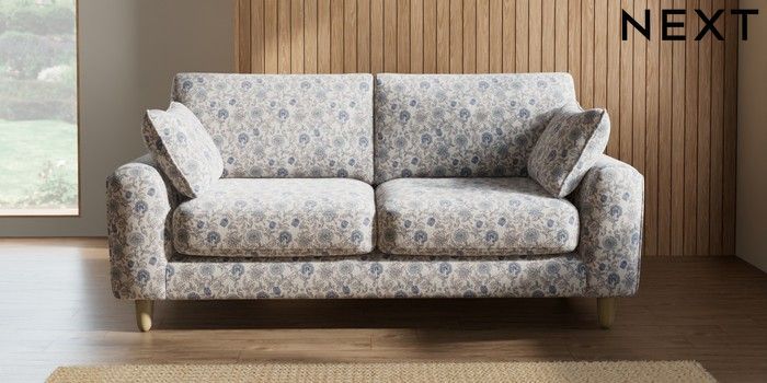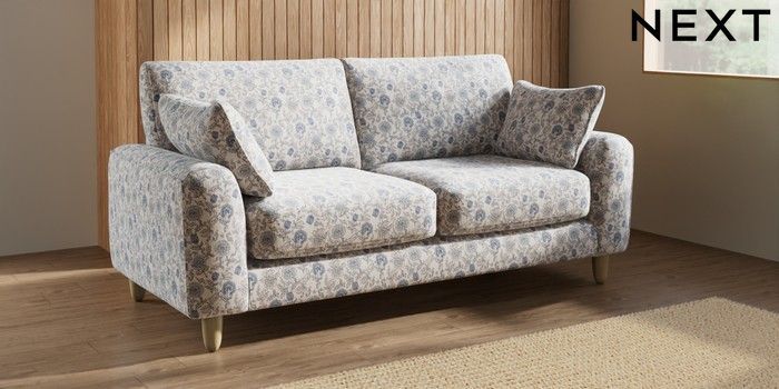 7.3.1 Buy Campbell 3 Seater Small Sofa Relaxed Linen Look Print Woodblock Floral Blue High Leg - Light from the Seasons online shop
