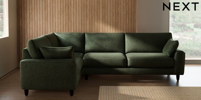 7.2.10 Buy Campbell Large Corner Sofa - Left Hand Boucle Chenille Dark Moss Green High Leg - Dark from the Seasons online shop Click here to use our website with more accessibility support, for example screen readers