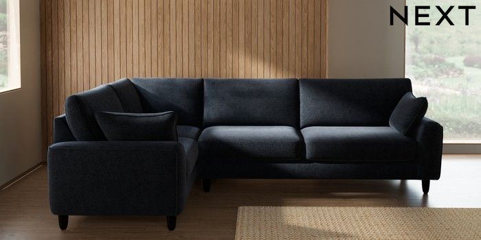7.2.10 Buy Campbell Large Corner Sofa - Left Hand Boucle Chenille Dark Slate Blue High Leg - Dark from the Seasons online shop Click here to use our website with more accessibility support, for example screen readers