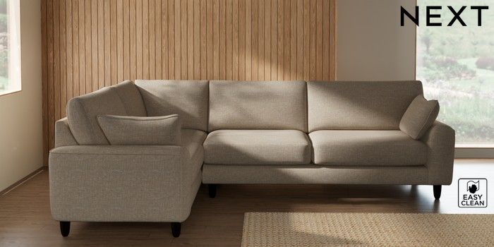 7.3.1 Buy Campbell Large Corner Sofa - Left Hand Boucle Weave Easy Clean Dark Natural High Leg - Dark from the Seasons online shop Click here to use our website with more accessibility support, for example screen readers