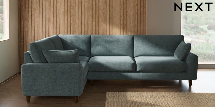 7.2.10 Buy Campbell Large Corner Sofa - Left Hand Chunky Chenille Light Teal Green High Leg - Mid from the Seasons online shop Click here to use our website with more accessibility support, for example screen readers