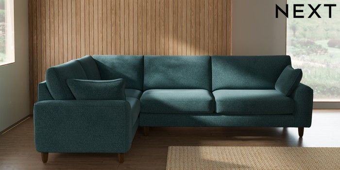 7.2.10 Buy Campbell Large Corner Sofa - Left Hand Chunky Chenille Mid Teal Green High Leg - Mid from the Seasons online shop Click here to use our website with more accessibility support, for example screen readers