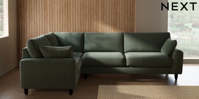 7.2.10 Buy Campbell Large Corner Sofa - Left Hand Chunky Texture Mid Forest Green High Leg - Dark from the Seasons online shop Click here to use our website with more accessibility support, for example screen readers