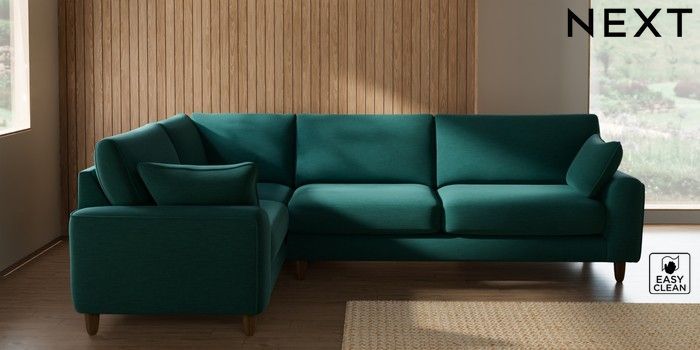 7.2.10 Buy Campbell Large Corner Sofa - Left Hand Fine Chenille Easy Clean Dark Juniper Green High Leg - Mid from the Seasons online shop Click here to use our website with more accessibility support, for example screen readers