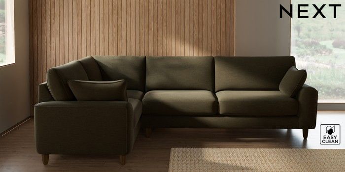 7.3.1 Buy Campbell Large Corner Sofa - Left Hand Fine Chenille Easy Clean Dark Moss Green High Leg - Mid from the Seasons online shop Click here to use our website with more accessibility support, for example screen readers