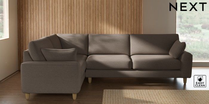 7.3.1 Buy Campbell Large Corner Sofa - Left Hand Fine Chenille Easy Clean Mid Taupe Brown High Leg - Light from the Seasons online shop Click here to use our website with more accessibility support, for example screen readers
