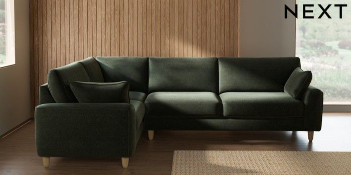 7.2.10 Buy Campbell Large Corner Sofa - Left Hand Luxe Chenille Mid Green High Leg - Light from the Seasons online shop Click here to use our website with more accessibility support, for example screen readers