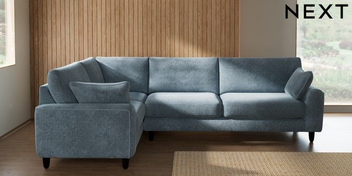 7.2.10 Buy Campbell Large Corner Sofa - Left Hand Plush Chenille Light Blue High Leg - Dark from the Seasons online shop Click here to use our website with more accessibility support, for example screen readers