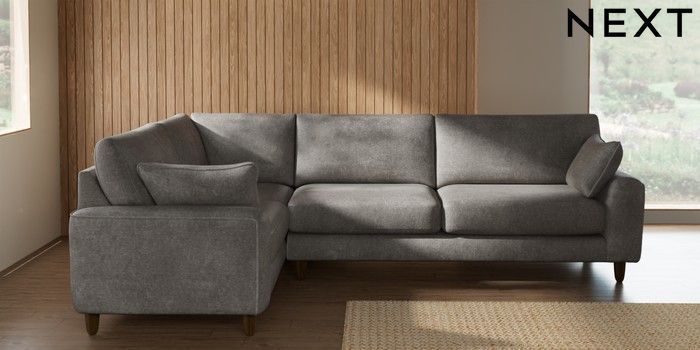 7.2.10 Buy Campbell Large Corner Sofa - Left Hand Plush Chenille Light Grey High Leg - Mid from the Seasons online shop Click here to use our website with more accessibility support, for example screen readers