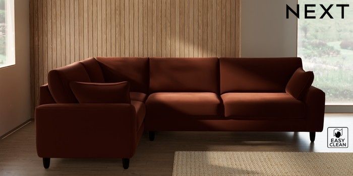 7.3.1 Buy Campbell Large Corner Sofa - Left Hand Plush Velvet Easy Clean Ginger Orange High Leg - Dark from the Seasons online shop Click here to use our website with more accessibility support, for example screen readers