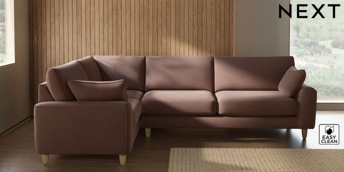 7.3.1 Buy Campbell Large Corner Sofa - Left Hand Plush Velvet Easy Clean Mid Natural High Leg - Light from the Seasons online shop Click here to use our website with more accessibility support, for example screen readers