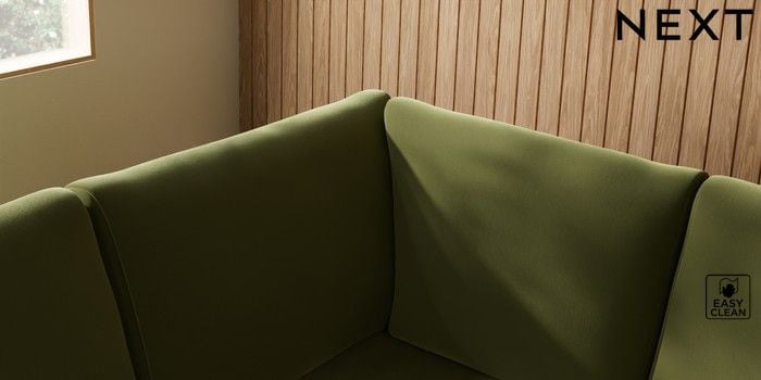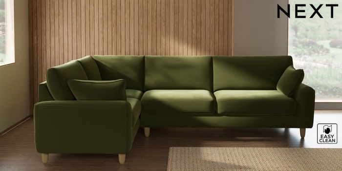 7.3.1 Buy Campbell Large Corner Sofa - Left Hand Plush Velvet Easy Clean Mid Olive Green High Leg - Light from the Seasons online shop Click here to use our website with more accessibility support, for example screen readers