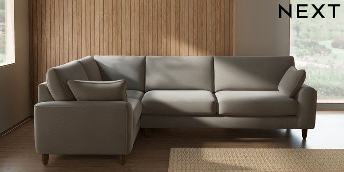 7.2.10 Buy Campbell Large Corner Sofa - Left Hand Ripple Chenille Light Natural High Leg - Mid from the Seasons online shop Click here to use our website with more accessibility support, for example screen readers