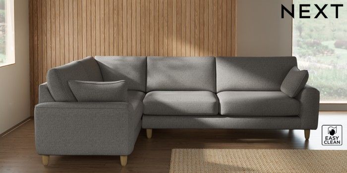 7.2.10 Buy Campbell Large Corner Sofa - Left Hand Woven Chenille Easy Clean Light Grey High Leg - Light from the Seasons online shop Click here to use our website with more accessibility support, for example screen readers