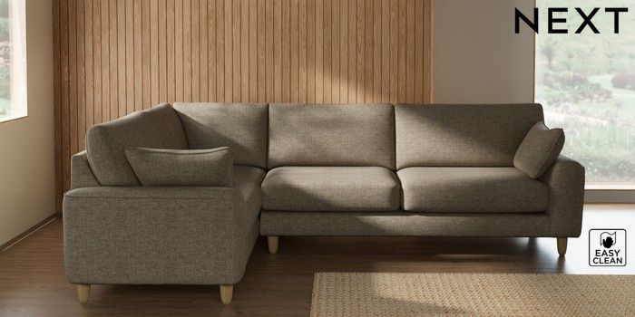 7.2.10 Buy Campbell Large Corner Sofa - Left Hand Woven Chenille Easy Clean Mid Natural High Leg - Light from the Seasons online shop Click here to use our website with more accessibility support, for example screen readers