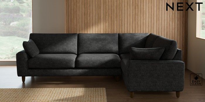 7.3.1 Buy Campbell Large Corner Sofa - Right Hand Boucle Weave Easy Clean Charcoal Grey High Leg - Mid from the Seasons online shop Click here to use our website with more accessibility support, for example screen readers