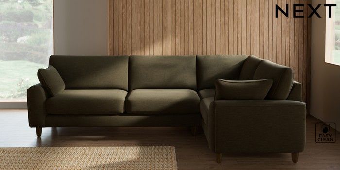 7.3.1 Buy Campbell Large Corner Sofa - Right Hand Fine Chenille Easy Clean Dark Moss Green High Leg - Mid from the Seasons online shop Click here to use our website with more accessibility support, for example screen readers